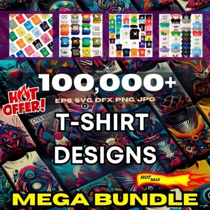 Discover the ultimate collection with our 100,000+ Massive T-Shirt Design Bundle! Perfect for T-Shirt manufacturers, print shops and designers, this extensive bundle offers an unmatched variety of designs to suit every theme and style.