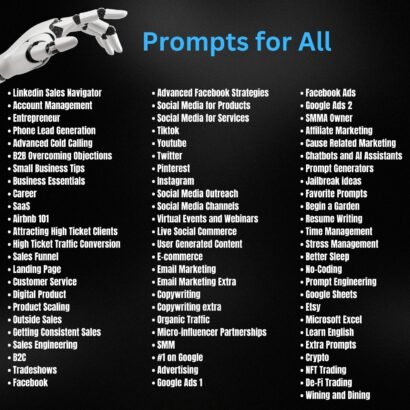Our bundle of ChatGPT prompts is designed to empower a wide range of users, from content creators and businesses to educators and freelancers. By providing structured inputs for AI tools, these prompts help users generate high-quality text and visual content efficiently, enabling them to focus on creativity and innovation.