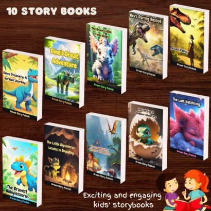 The storybooks feature adventurous tales that transport children to the age of dinosaurs, where they can embark on exciting journeys with a variety of dinosaur characters.
